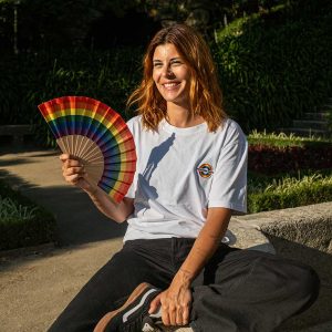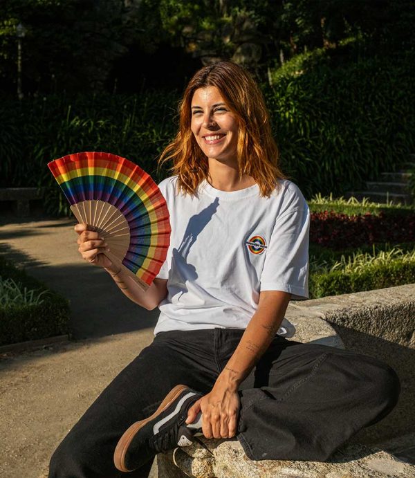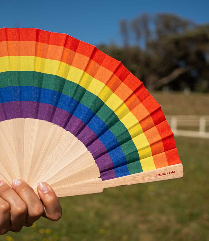 Além de ser um verdadeiro statement, o Leque Pride é prático e fácil de levar, perfeito para dar aquele toque de frescor durante os dias mais quentes ou para completar o teu look com um toque colorido.