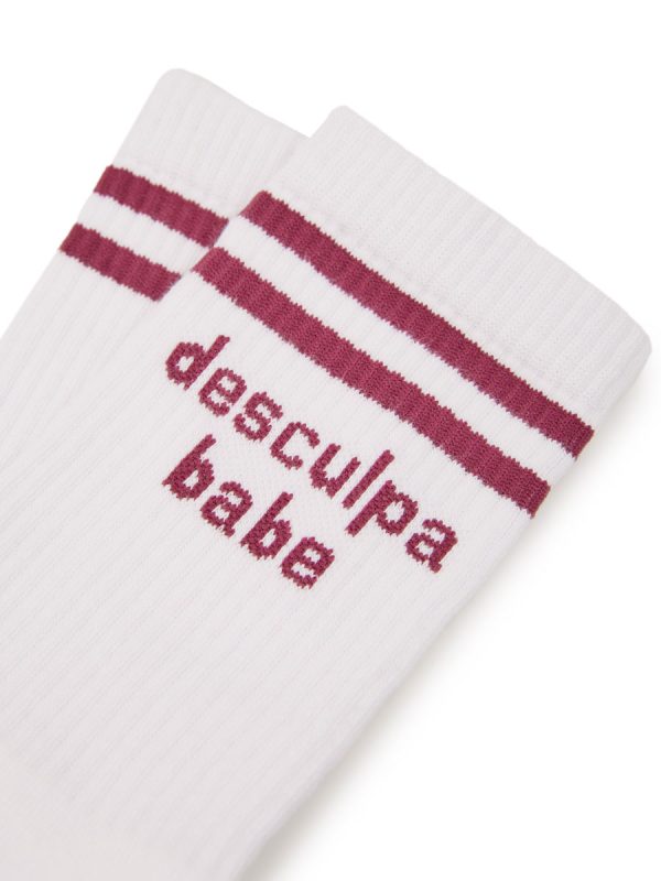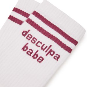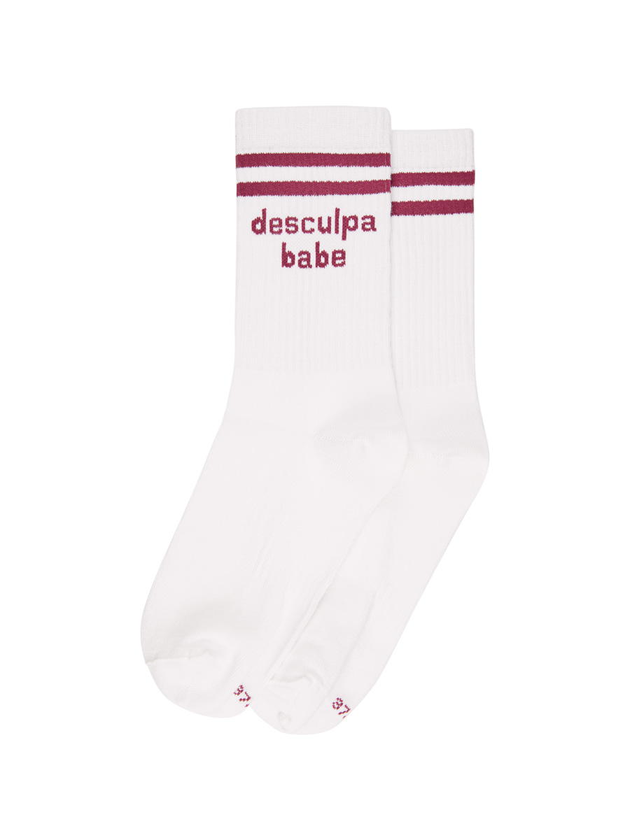 Com duas riscas em bordô e o “desculpa babe” bordado, as Meias Desculpa Babe tornaram-se um dos nossos best sellers por um motivo: são simples, mas dizem tudo.